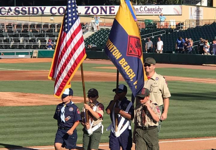 In honor of Independence Day, Pack 100 visited Roger Dean Stadium for an evening of baseball followed by fireworks. This year's trip was special for the Pack as our Color Guard presented the Colors during the opening ceremonies. Our Scouts caught the attention of stadium staff, and many of them participated in the games between innings. One of our Scouts was a pre-game Bat Boy and had a chance to hang out with the Jupiter Hammerheads. Several Scouts received autographs on their baseballs too! We had a blast!