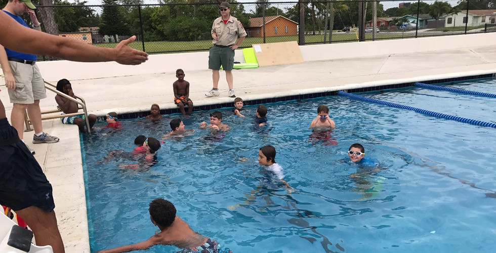 On Saturday, September 2nd, Pack 100’s Webelos and Arrow of Light Scouts gathered at Denson Pool to start of the year with a SPLASH! They learned about the precautions to take whenever going swimming or doing any kind of boating. Our Scouts know that they must always have a buddy and an adult around, that they should check weather conditions, and more! The boys also learned the “Order of Rescue,” and that they should always try to reach a drowning victim by throwing them something or reaching out to them with a pole or a rope rather than diving in and putting themselves at risk. One of the lifeguards at the pool helped demonstrate proper rescue techniques, and talked to them about what it takes to be a lifeguard. Each Scout then attempted various levels of the BSA Swim Test, and many of them surprised themselves by doing better than they expected. The day was finished off with snacks and fun times racing down the various pool slides. Way to go Webelos!!